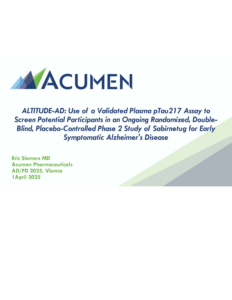 ALTITUDE-AD: Use of a Validated Plasma pTau217 Assay to Screen Potential Participants in an Ongoing Randomized, Double-Blind, Placebo-Controlled Phase 2 Study of Sabirnetug for Early Symptomatic Alzheimer’s Disease